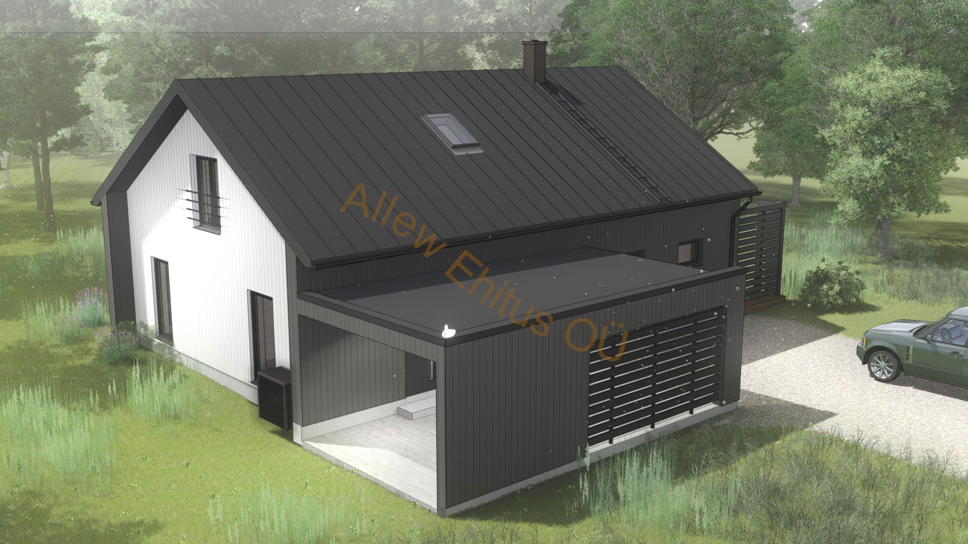Vihmavee süsteem on Pural kattega terasplekk (kandiline profiil). Vesi juhitakse maja nurkadest alla