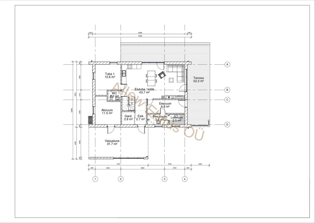 Välisseinad on Buroc 375mm+ 50mm eps+ krohv. Lae kõrgused 2600mm.